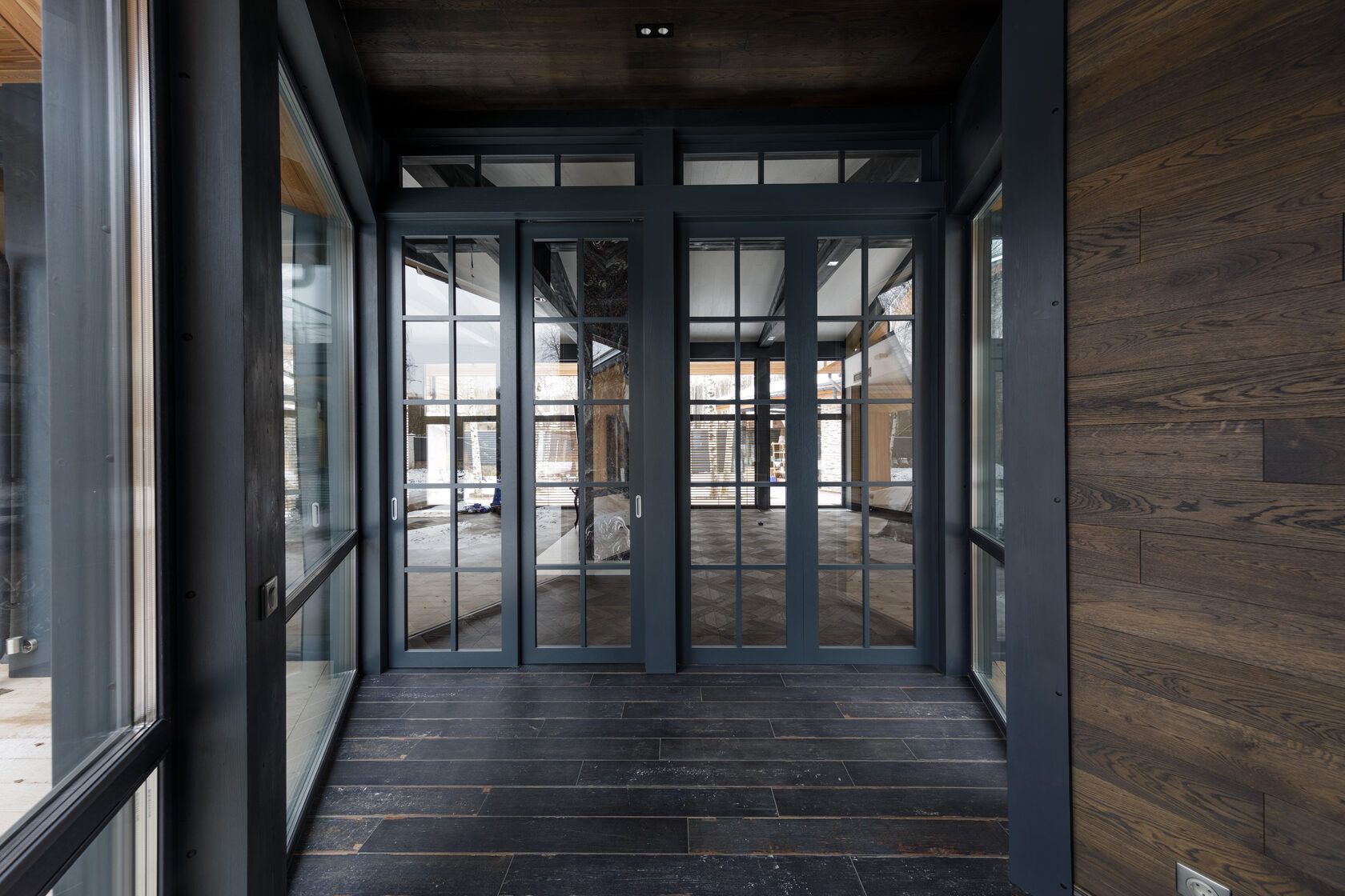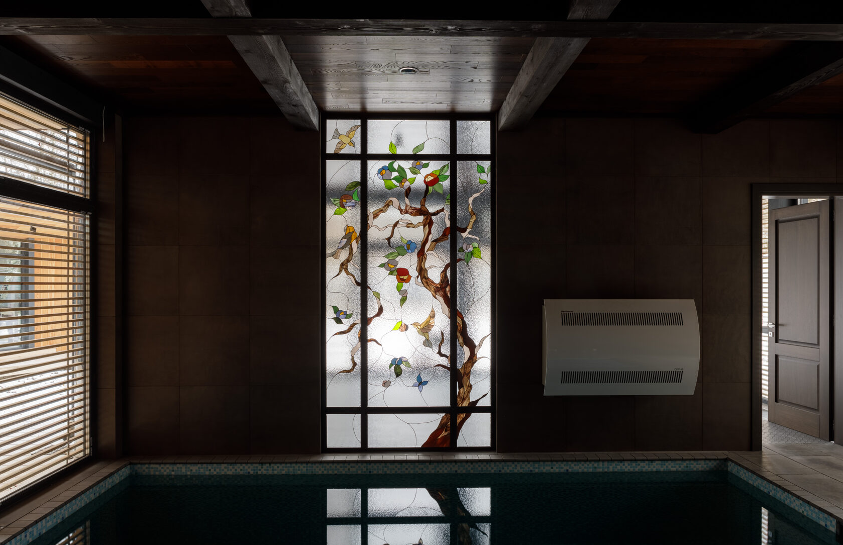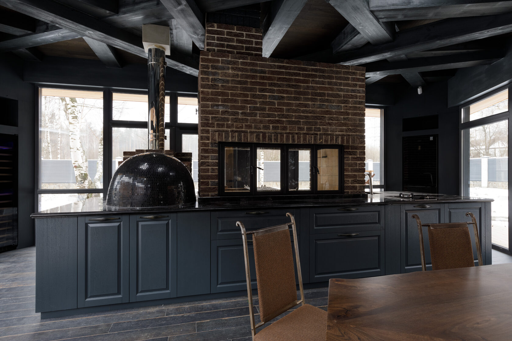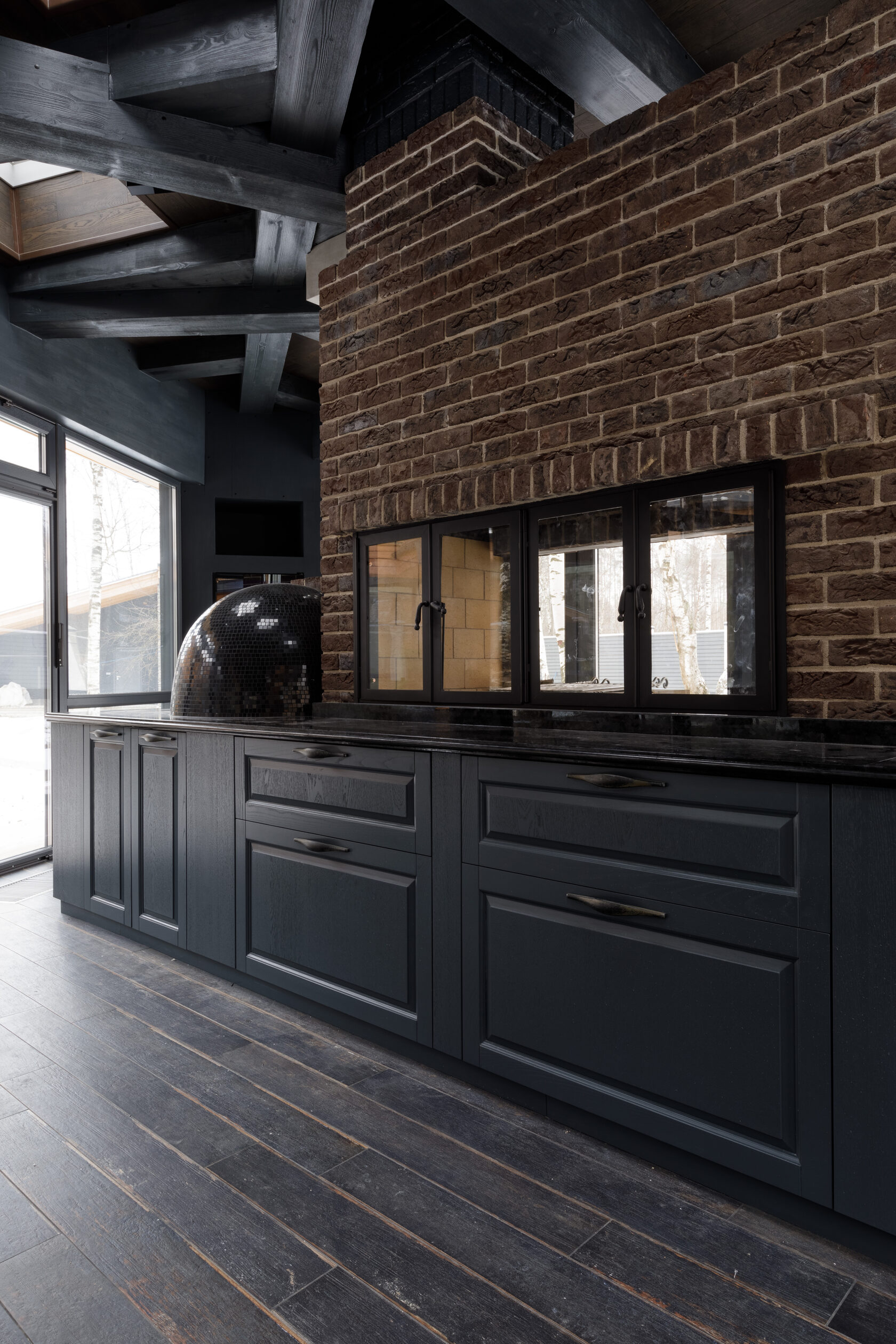 Современный дом, для которого мы выполнили зону барбекю, витраж в зоне